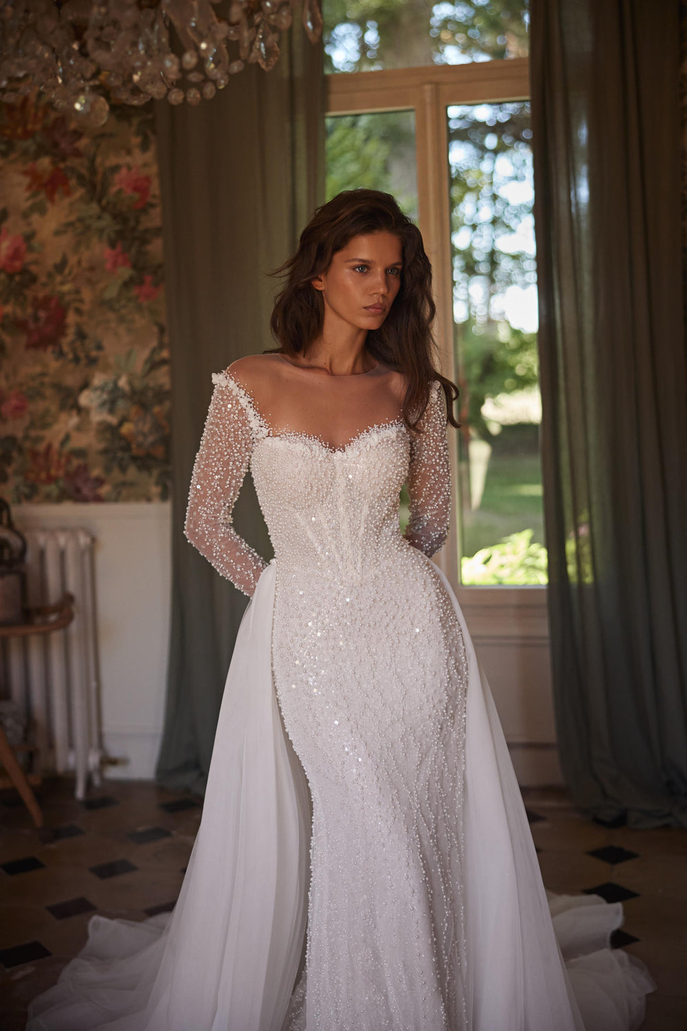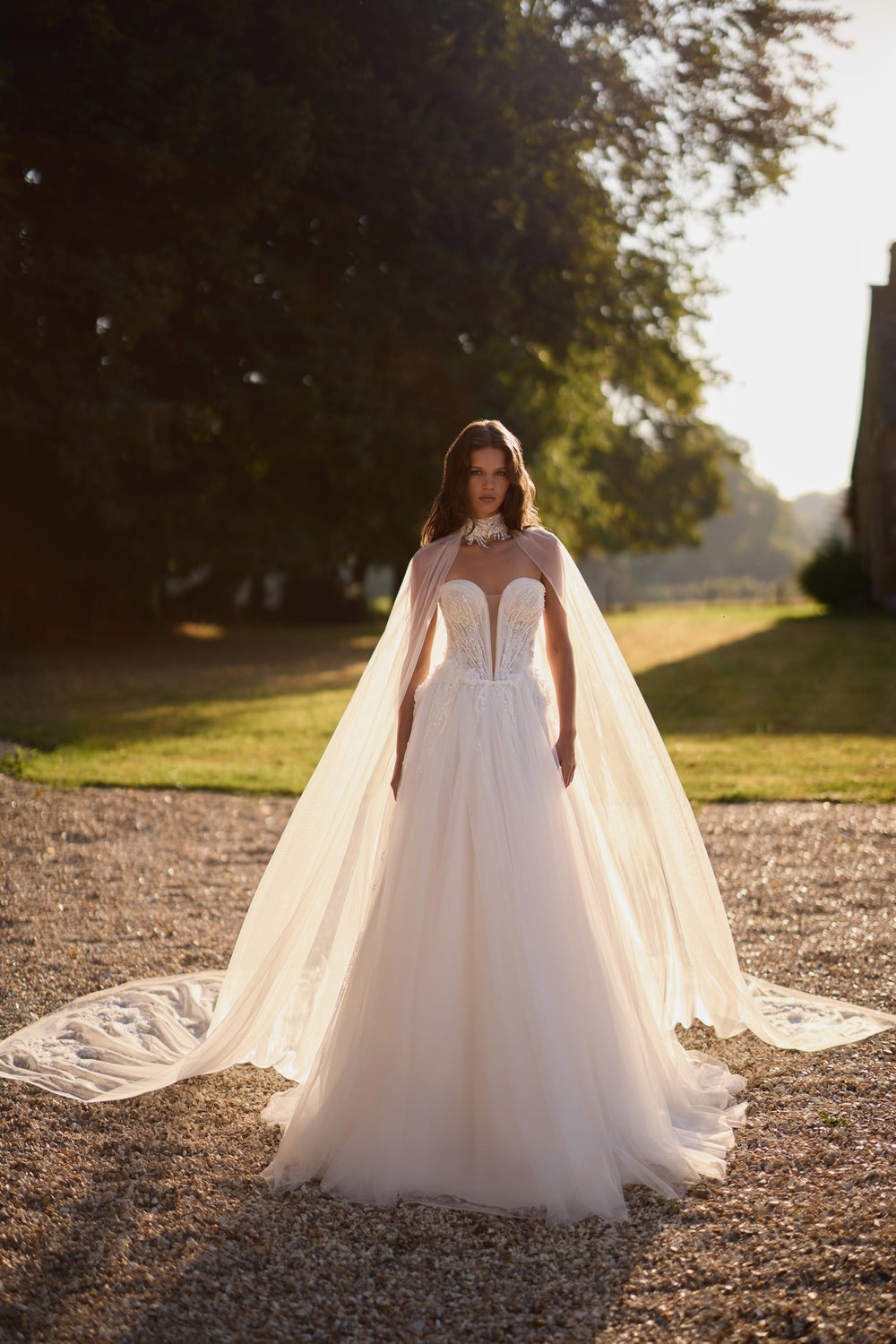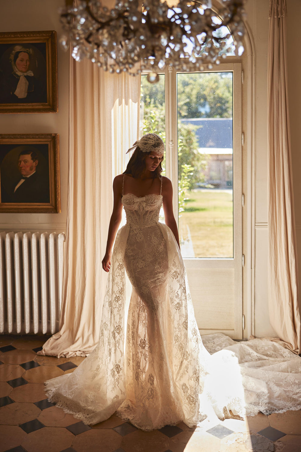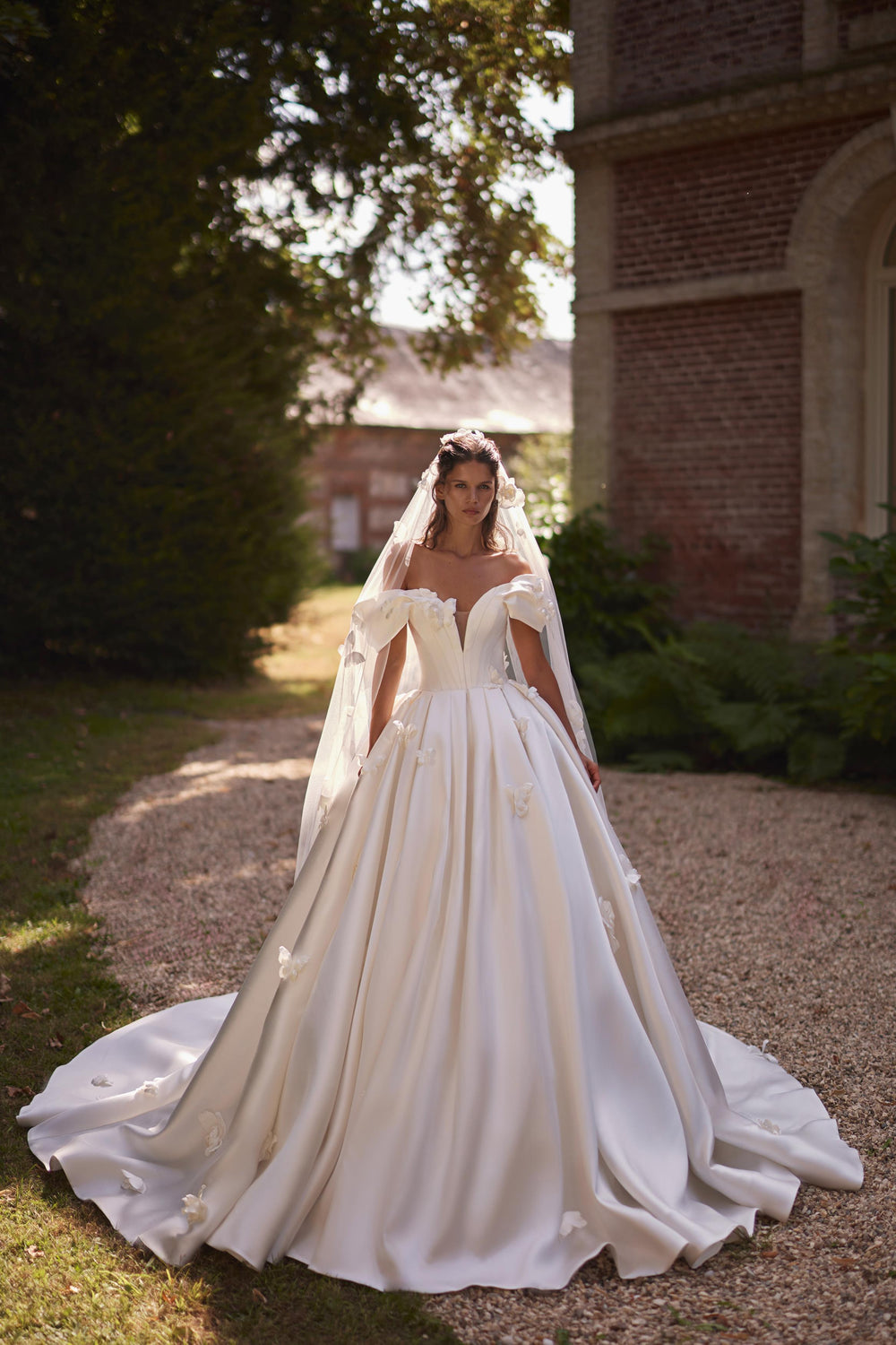 Esta colección te transporta a Normandía, la tierra donde los impresionistas capturaban con pasión la luz en sus lienzos, respiraban la embriagadora fragancia de los manzanos y escuchaban el murmullo del mar. Bohemios y románticos, los vestidos encarnan la misma magia: las telas fluyen como suaves olas, el encaje recuerda a jardines en flor y los detalles brillantes reflejan la luz única de Normandía.