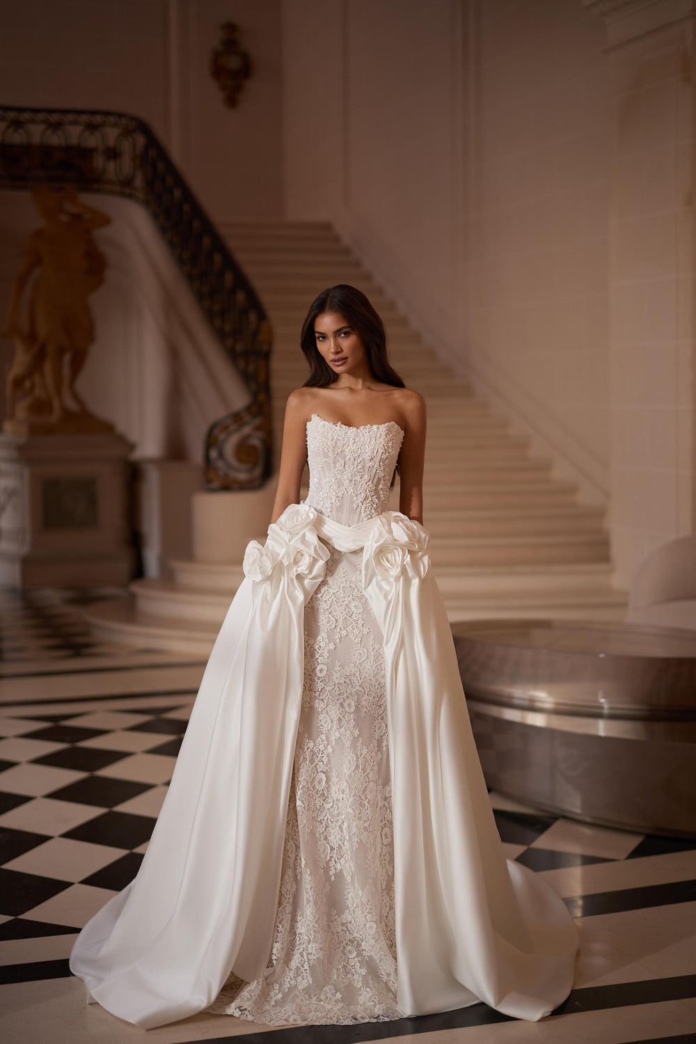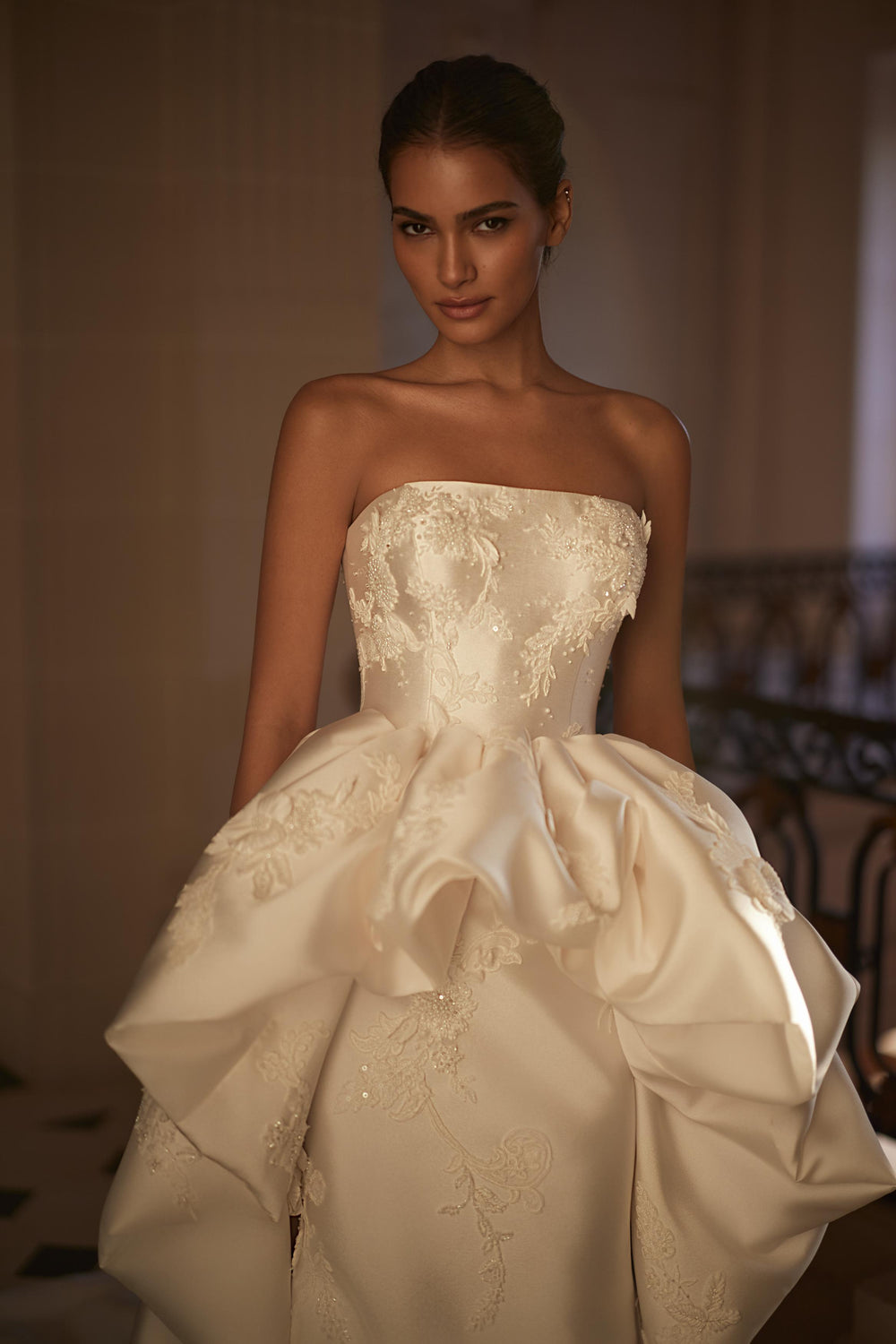 Trabajamos con 10 talleres de alta costura distribuidos por Europa. Todos los diseños se confeccionan artesanalmente bajo pedido para cada una de nuestras novias e invitadas