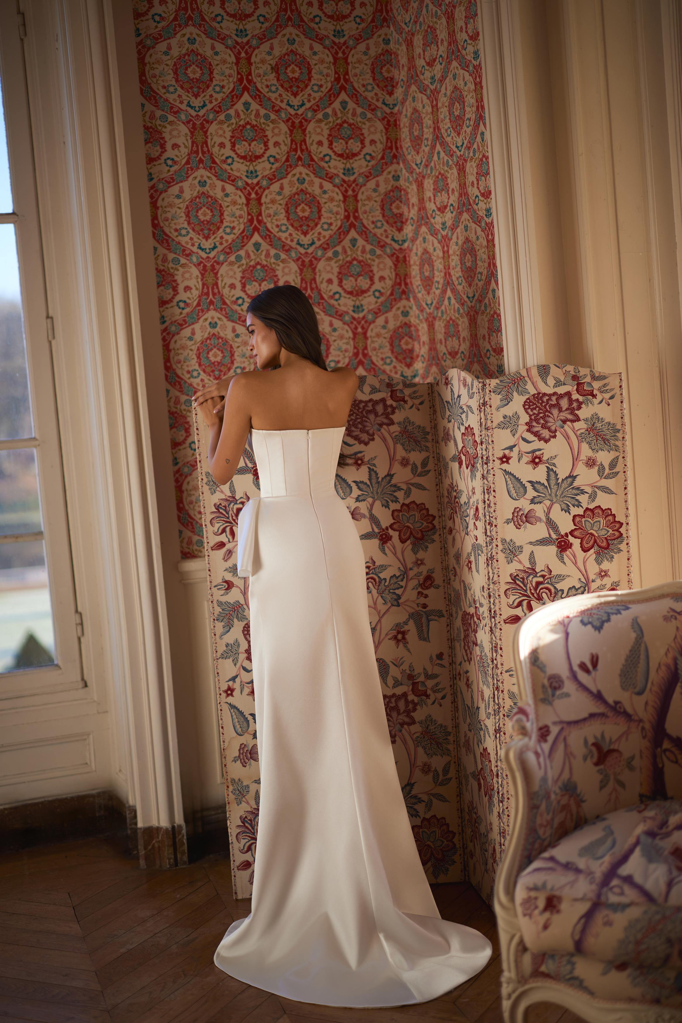 The Andressa wedding dress is a statement of modern elegance, where simplicity transforms into a form of absolute sophistication.