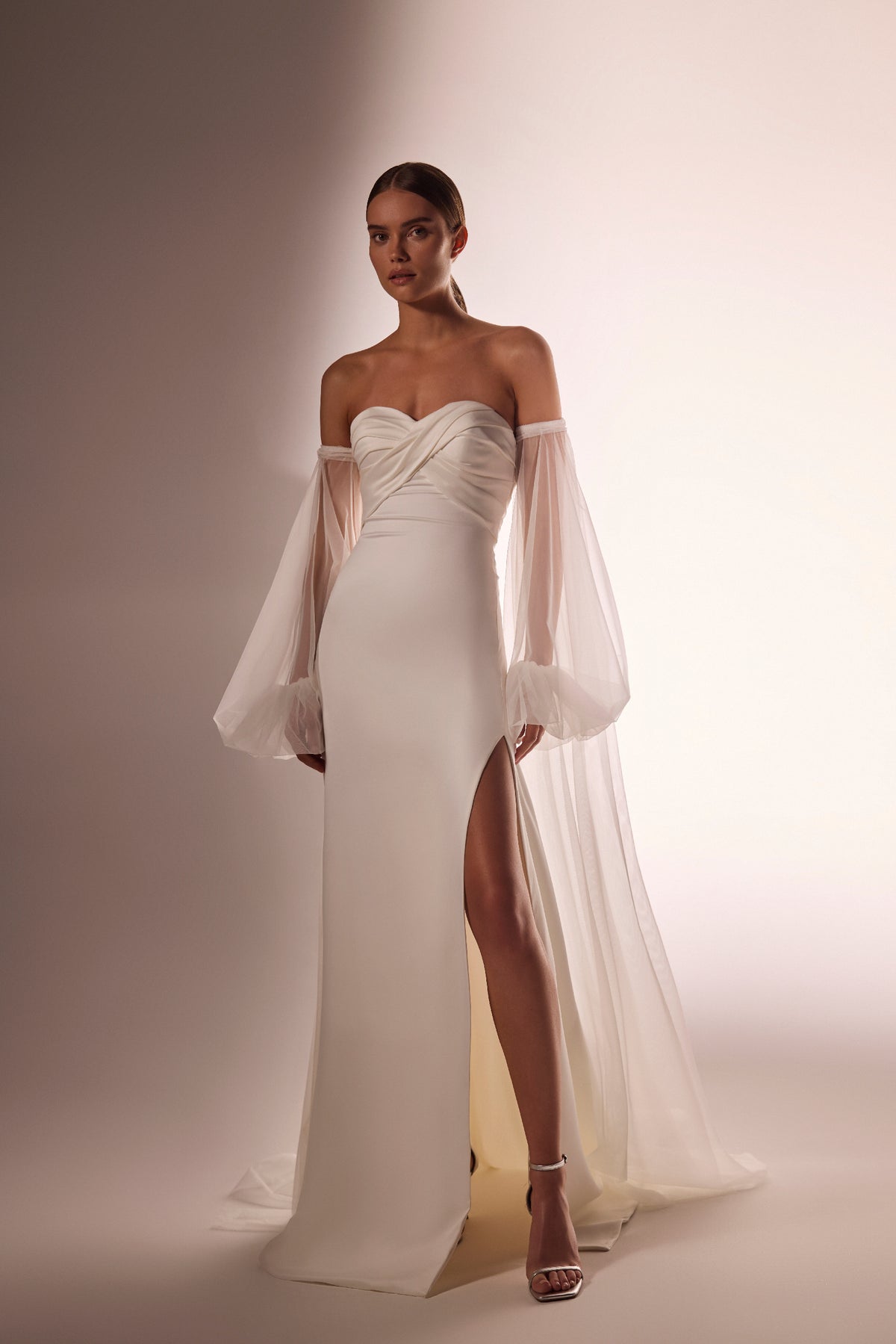 Como complemento, recomendamos unas mangas exuberantes adicionales hechas de tul de seda.